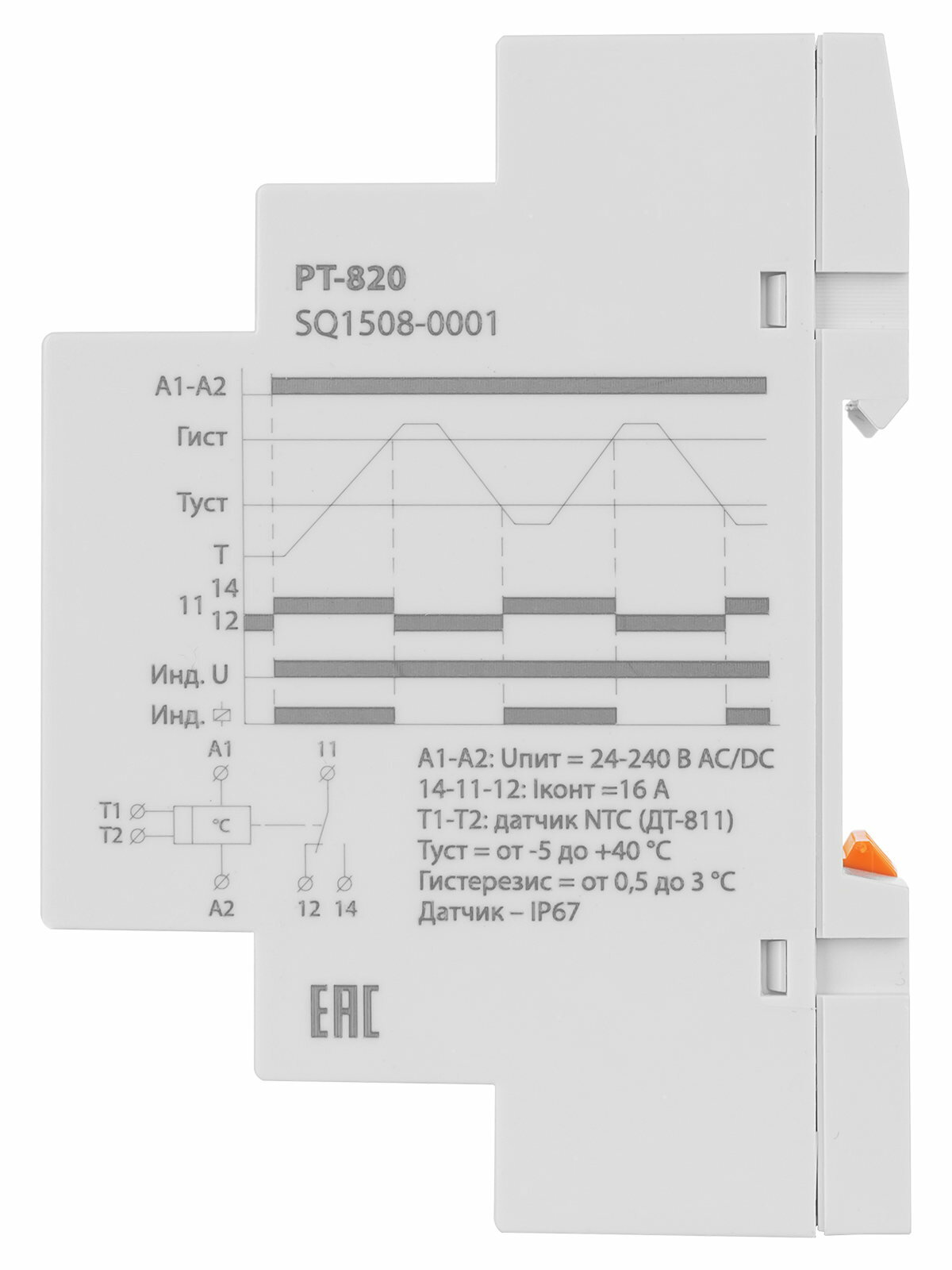 Реле температуры РТ-820 (-5+40С, 24-240В АС/DC, с датч. IP67), TDM SQ1508-0001 (1 шт.)