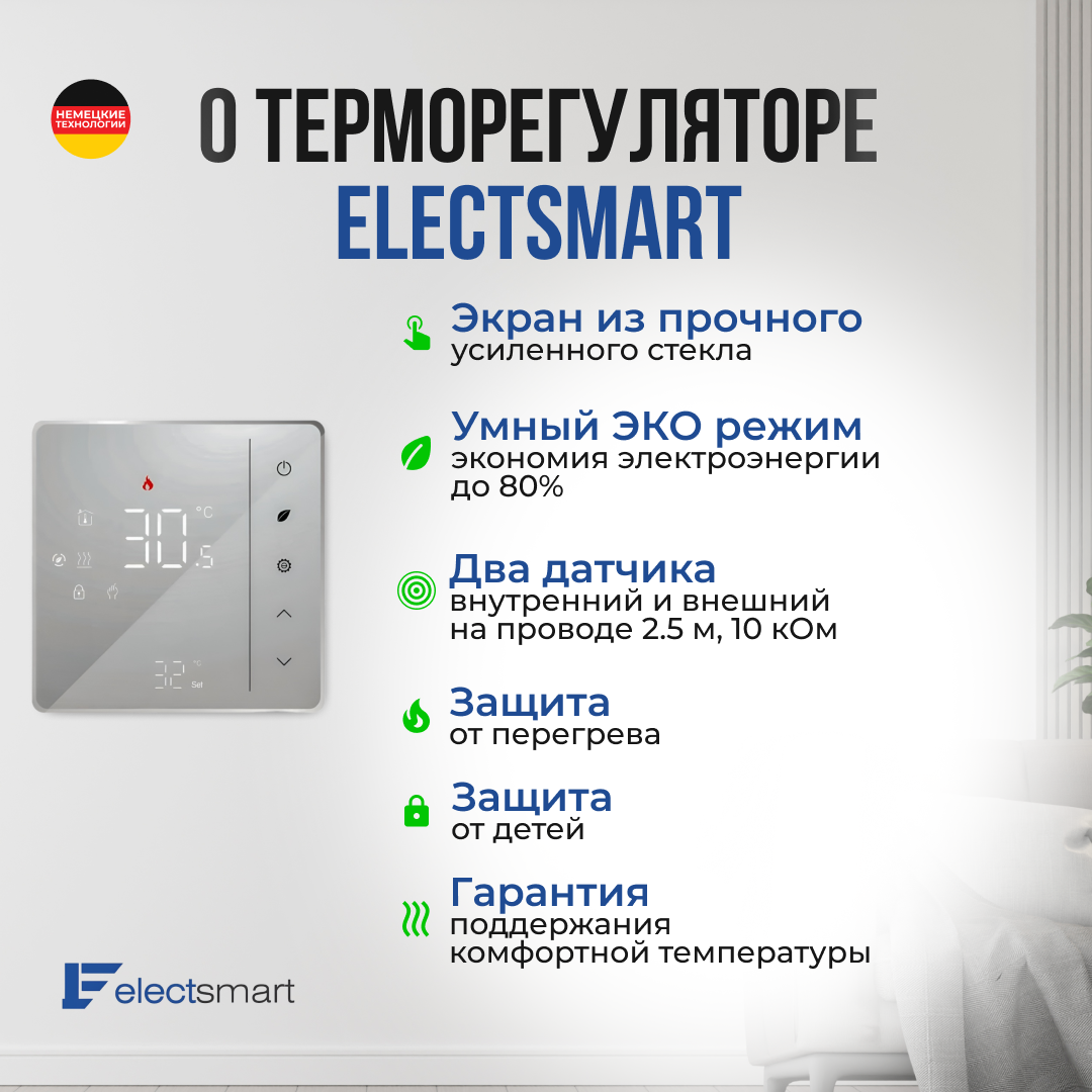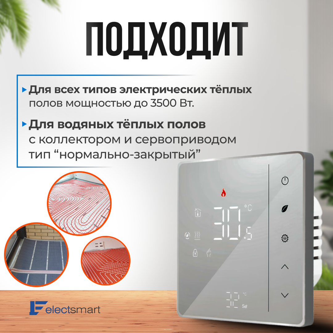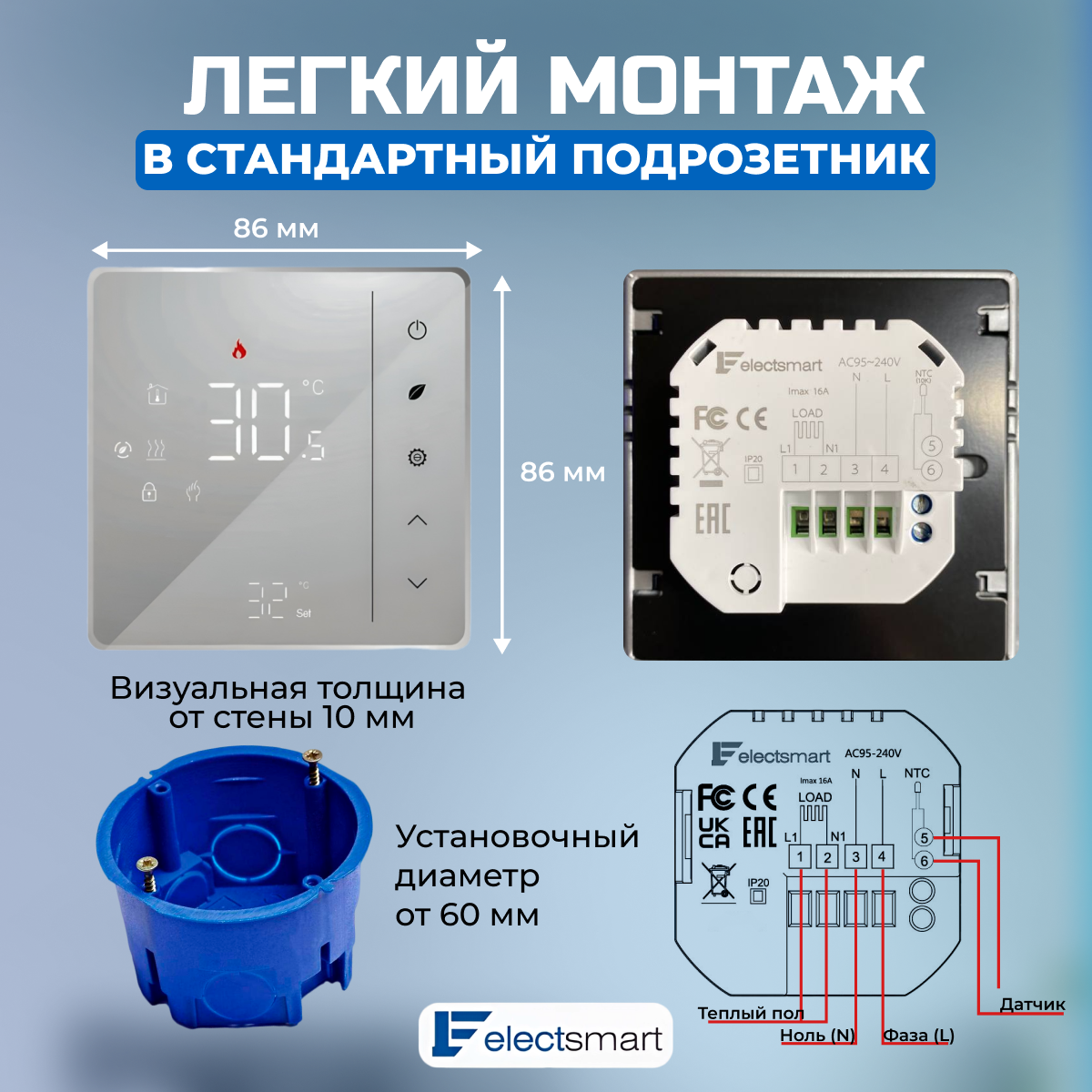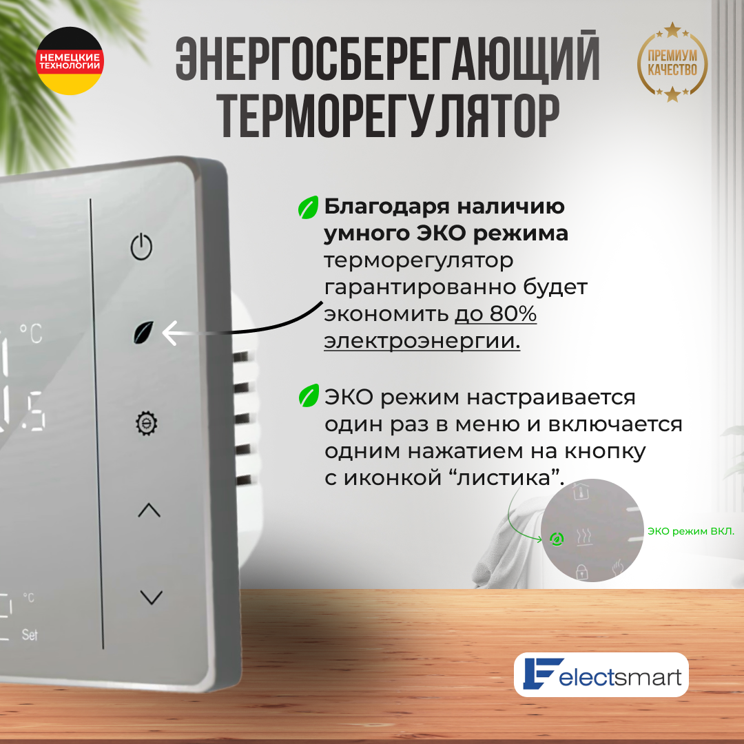 ELECTSMART EST-110-YM Терморегулятор/термостат для теплого пола / обогревателя, сенсорное управление, белый