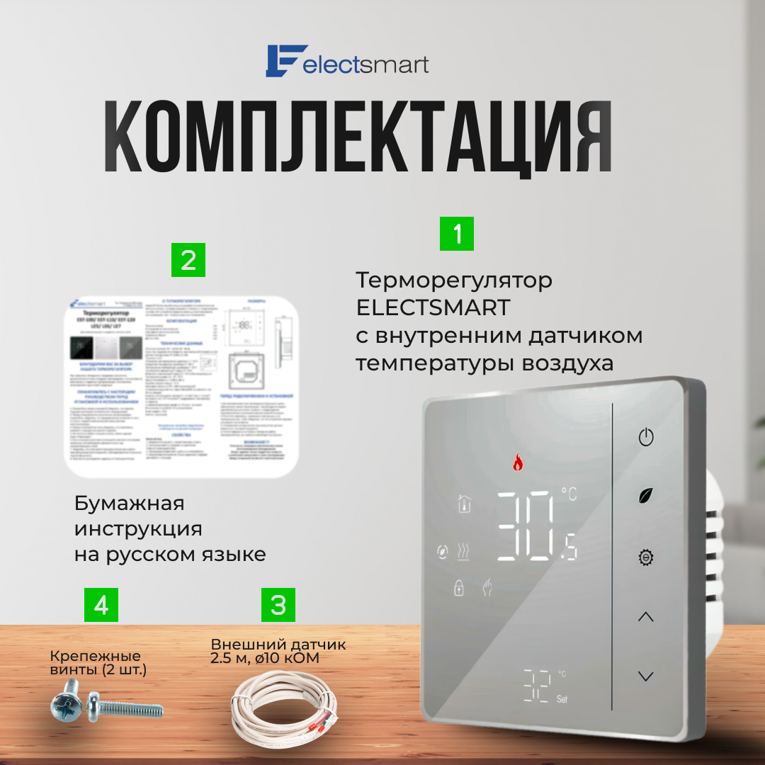 СохранитьELECTSMART EST-120-YM Терморегулятор/термостат для теплого пола / обогревателя, сенсорное управление, серый интересное: