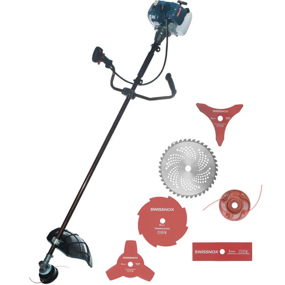 | Подробная комплектация | Лопастные ножи Swissnox (2Т, 3Т, 4Т, 8Т) - 1 комплект, Диск c победитовыми напайками (40Т) - 1 шт., Триммерная головка (пластиковая) - 1 шт., Насадка типа паук - 1 шт., Ранцевый плечевой ремень с защитой - 1 шт. Набор инструментов - 1 ком, Инструкция - 1 шт. Гарантийный талон - 1 шт |