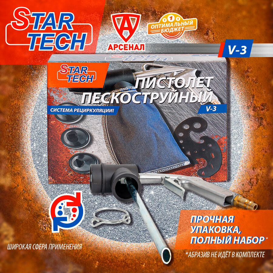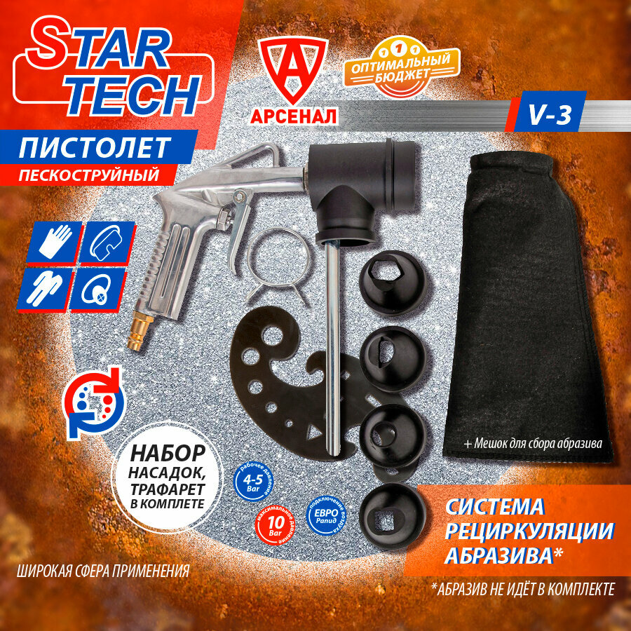 Пистолет пескоструйный с системой рециркуляции абразива StarTech (4 насадки + мешок для сбора абразива), V3 интересное: