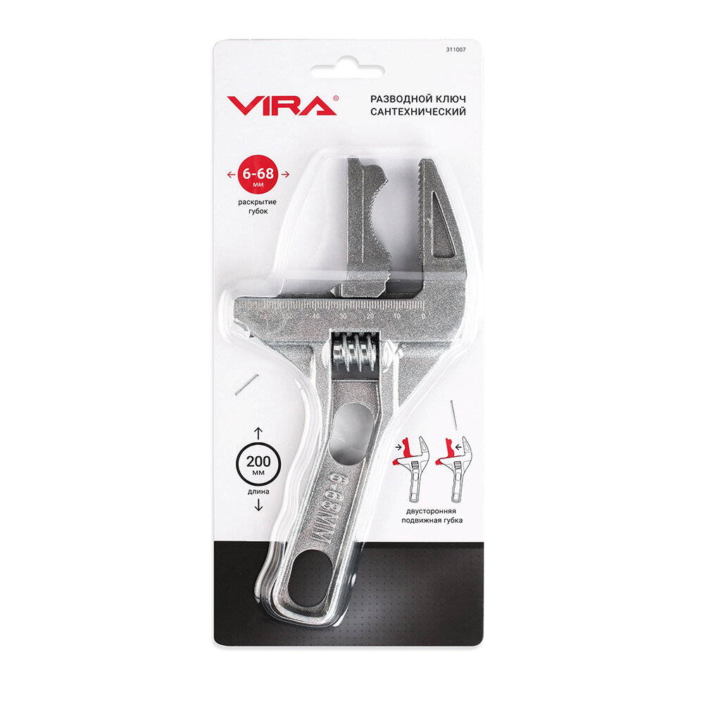 VIRA Разводной ключ сантехнический 6-68мм с укороченной ручкой 311007