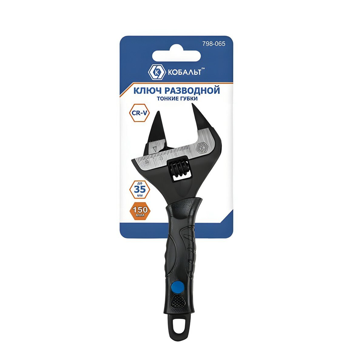 Разводной ключ кобальт 150 мм, с тонкими губками, ширина захвата 35 мм, двухкомпонентная рукоятка CR-V 798-065