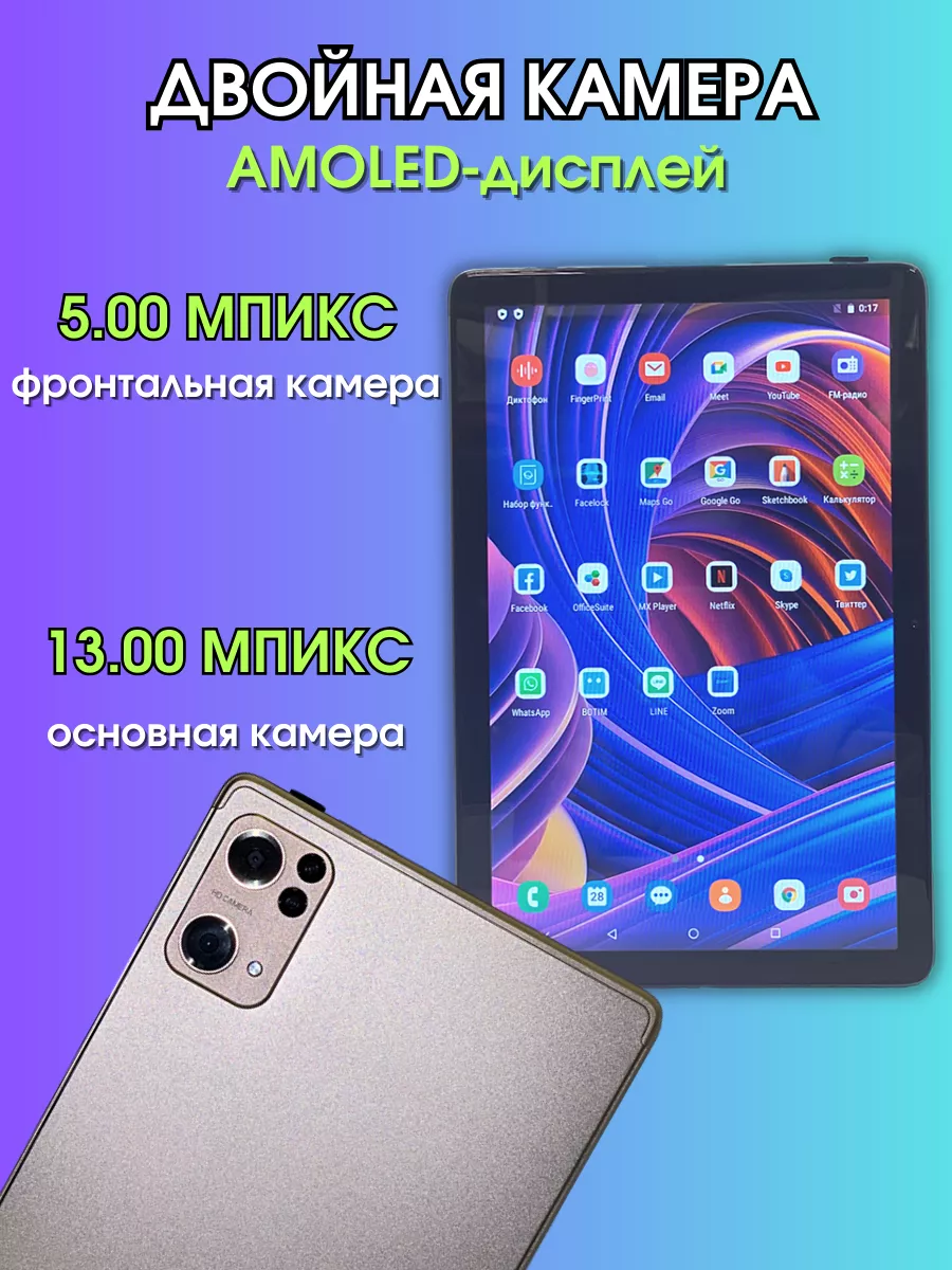 Планшет Lingbo 8/512 GB 10.1 дюйм Android 12 золотитый