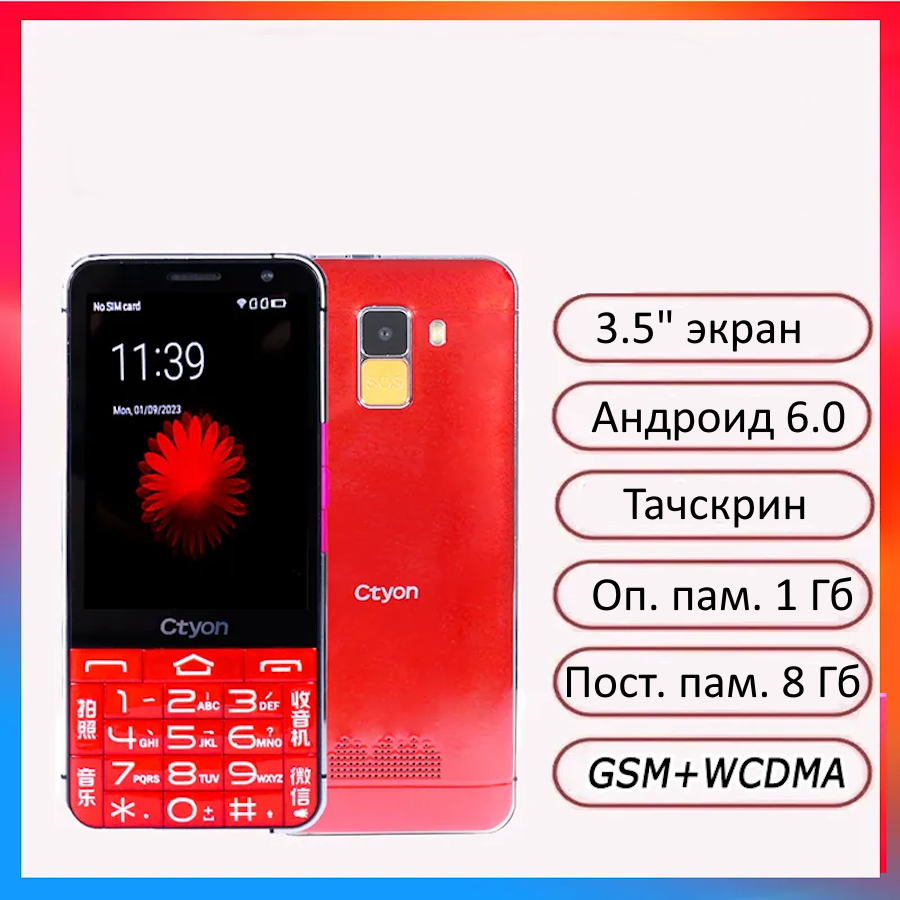 Смартфон кнопочный Ctyon CT06, 1\8 Гб, RUS, Android, с гравировкой интересное: