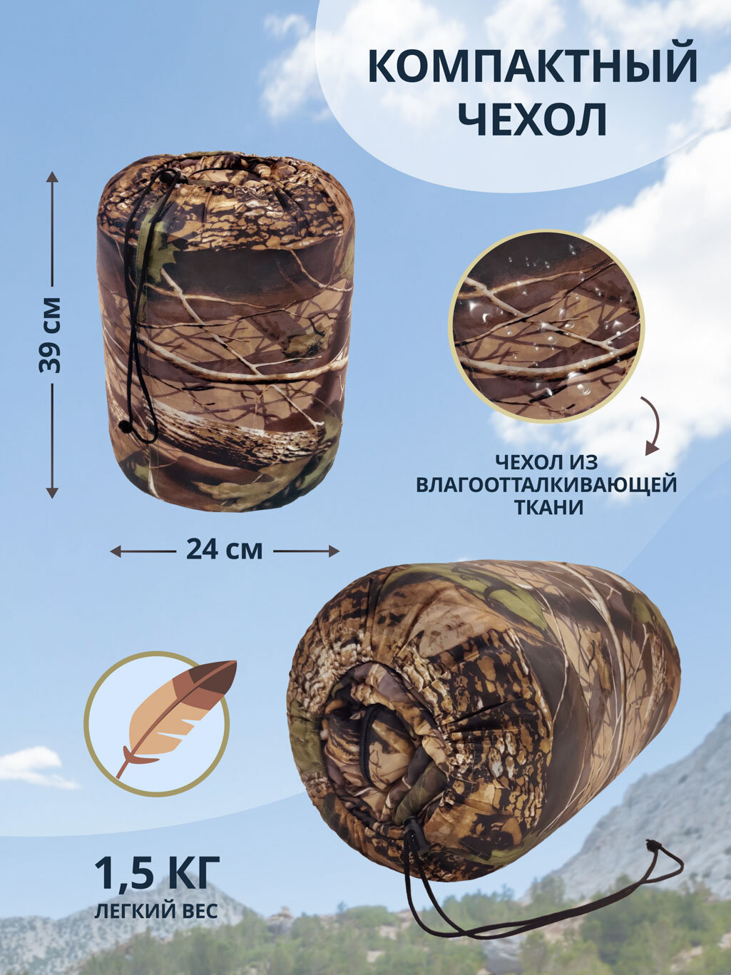 Спальный мешок (спальник туристический) Saimaa Comfort 200XL (235см) камуфляж интересное:
