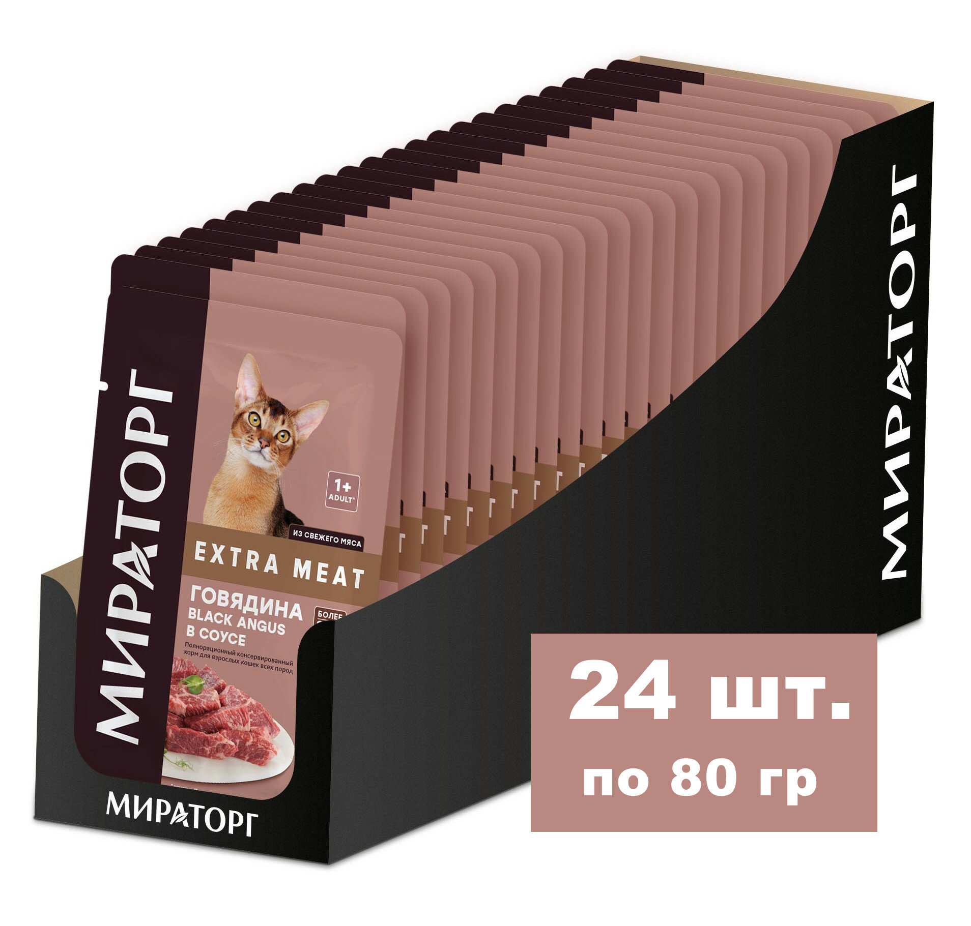 WINNER EXTRA MEAT для взрослых кошек с говядиной Black Angus в соусе (80 гр х 24 шт)
