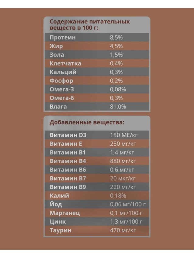 | Текстура | кусочки в желе / кусочки в соусе |