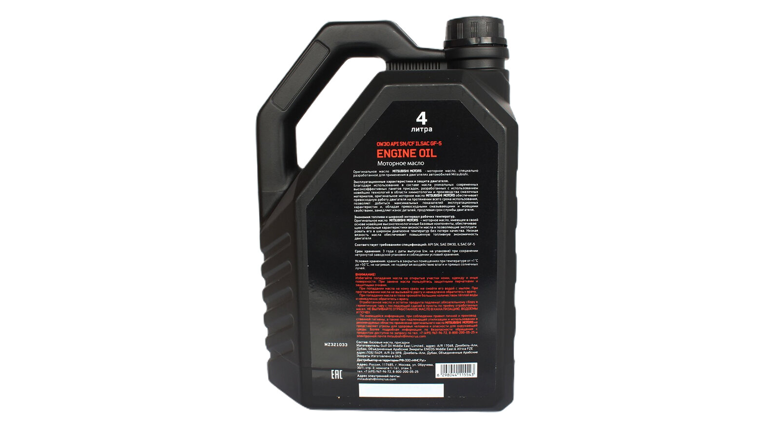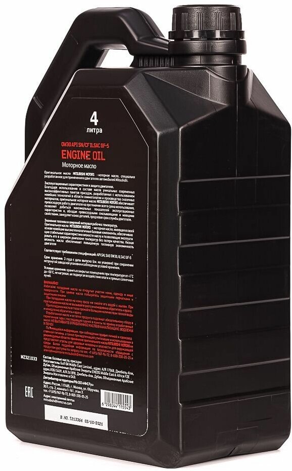 MZ321033_масло мот.! ENGINE OIL 0W30 4L синт.\ API SN/CF, ILSAC GF-5 MITSUBISHI