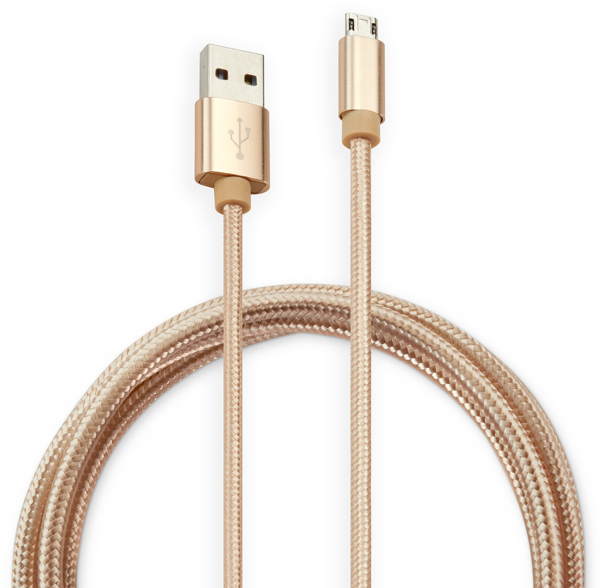 Купить Кабель Buro Reversible Braided, micro USB (m) - USB (m), 1м, 2.4A, золотистый [bhp microusb 1m braided]