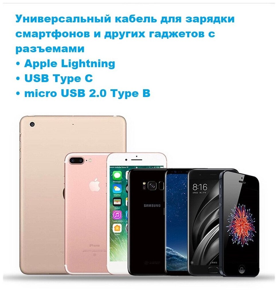 | Разъемы | USB 2.0 (am) - microUSB (bm)/USB Type-C (m)/Lightning (m) |