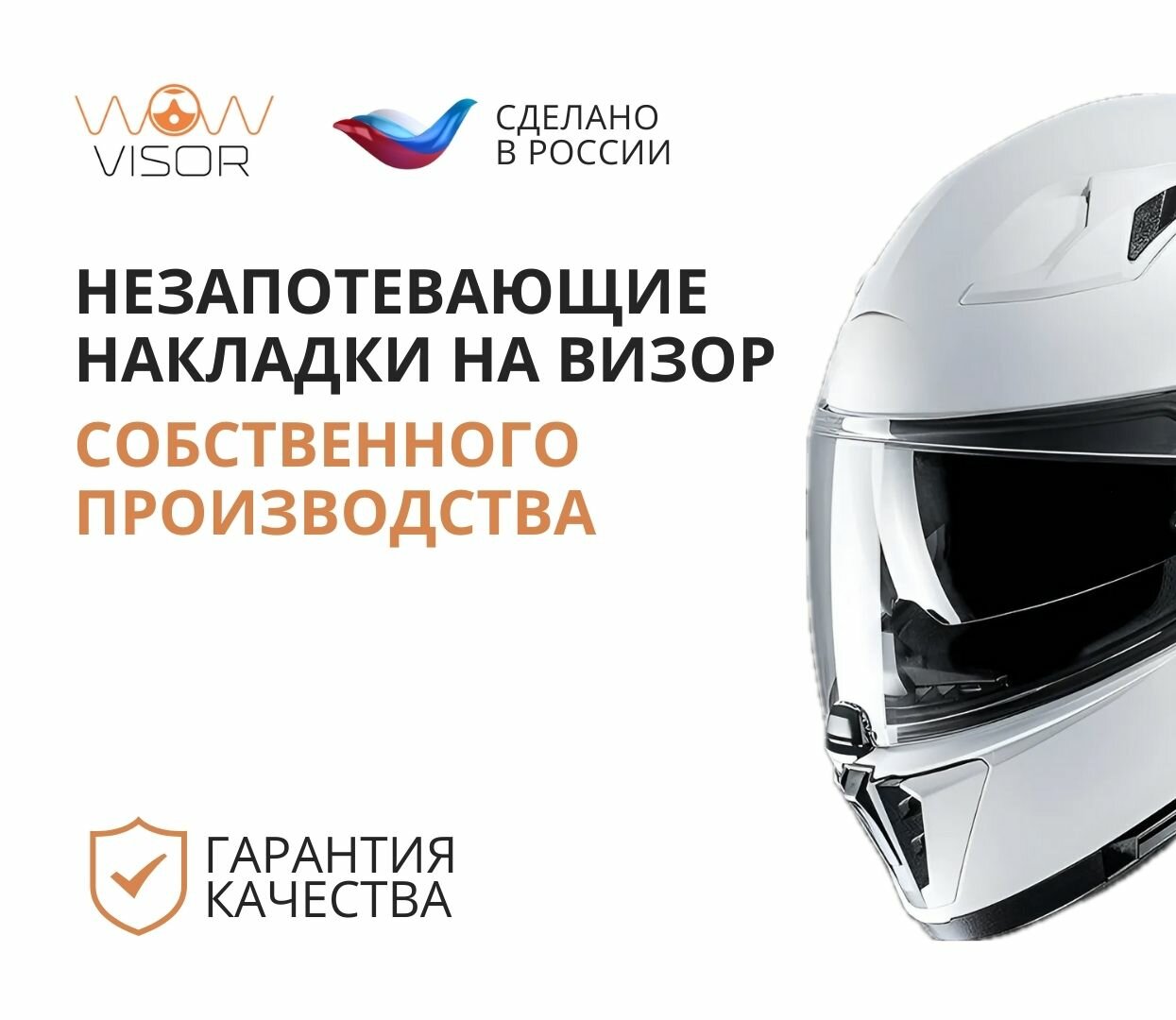 | Дополнительная информация | По форме накладка должна встать враспор между пинами и плотно прилегать по периметру формы к визору, создавая и удерживая тем самым воздух между собой и визором. В случае наличия небольшого расстояния между накладкой и визором необходимо повернуть вокруг своей оси пины. Если присмотреться сбоку на пинах, вертикальная ось расположена не по центру пина. Она сдвинута в одну из сторон. При наличии зазора у накладки необходимо повернуть пин вокруг оси, чтобы вертикальная ось оказалась ближе к центру визора. Тем самым она прижмет накладку к визору сильнее. |