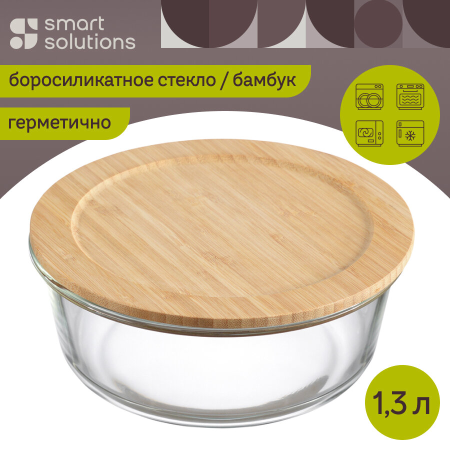 Контейнер для запекания и хранения Smart Solutions с крышкой из бамбука, 1300 мл интересное: