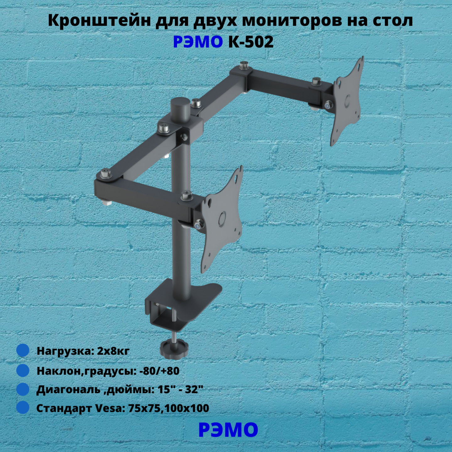 Кронштейн для двух мониторов на стол наклонно-поворотный с диагональю 15"-32" Рэмо К-502,чёрный интересное: