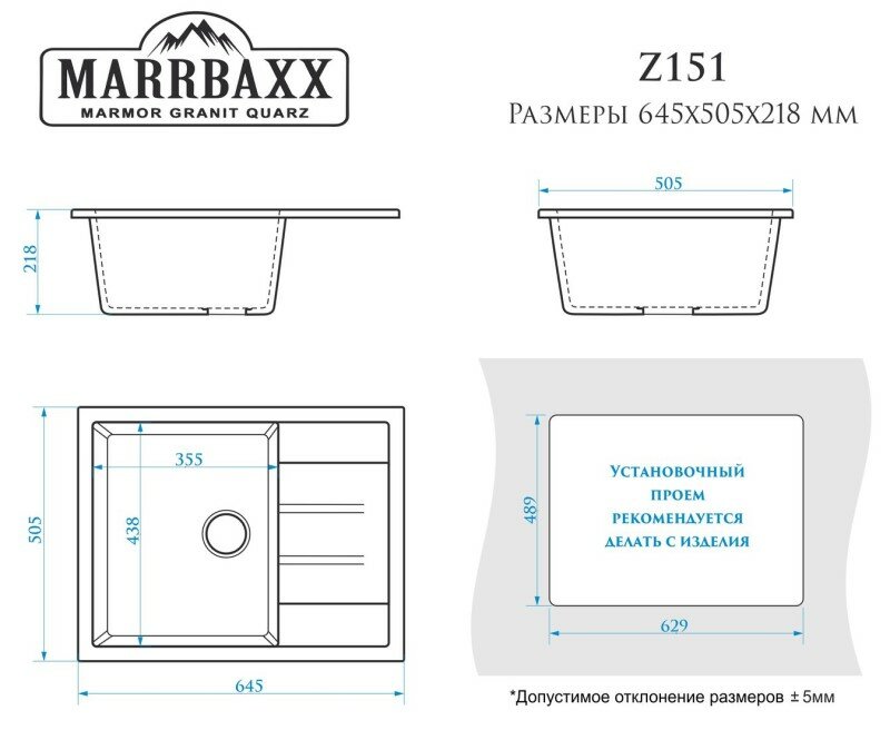 Мойка кухонная MARRBAXX Линди Z8Q4 чёрный 500*425*195