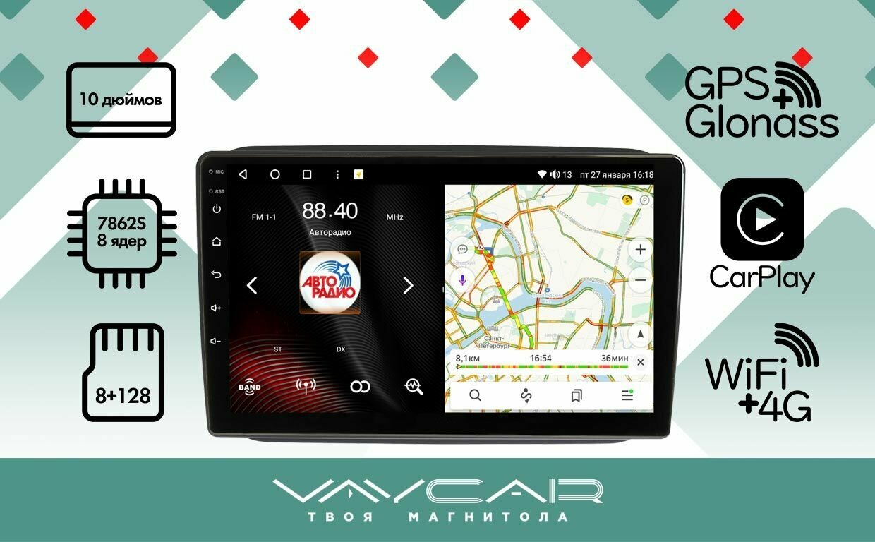 Магнитола Vaycar 10V2 для SKODA Fabia 2008-2014 (Андроид, 2+32, 8 ядер, WiFi, BT, 4G, GPS, QLED 10")