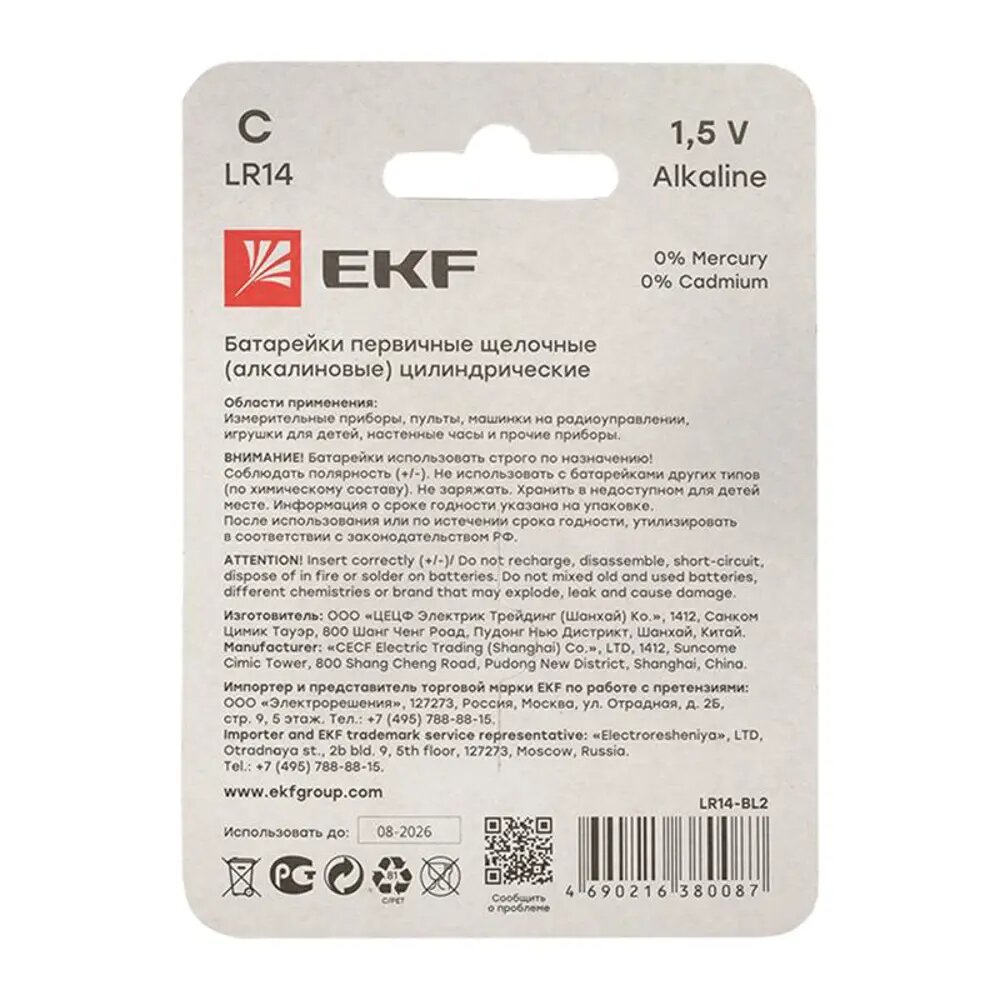 Купить Алкалиновая батарейка типа C(LR14) блистер 2шт., EKF LR14BL2 (1 упак)