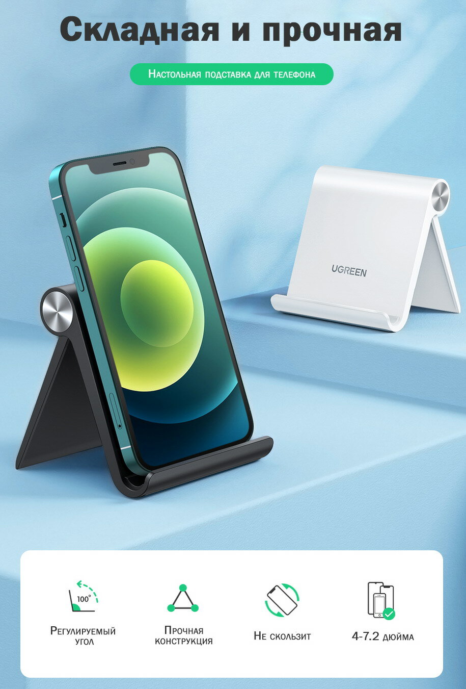 Подставка UGREEN для телефона, цвет черный (50747)