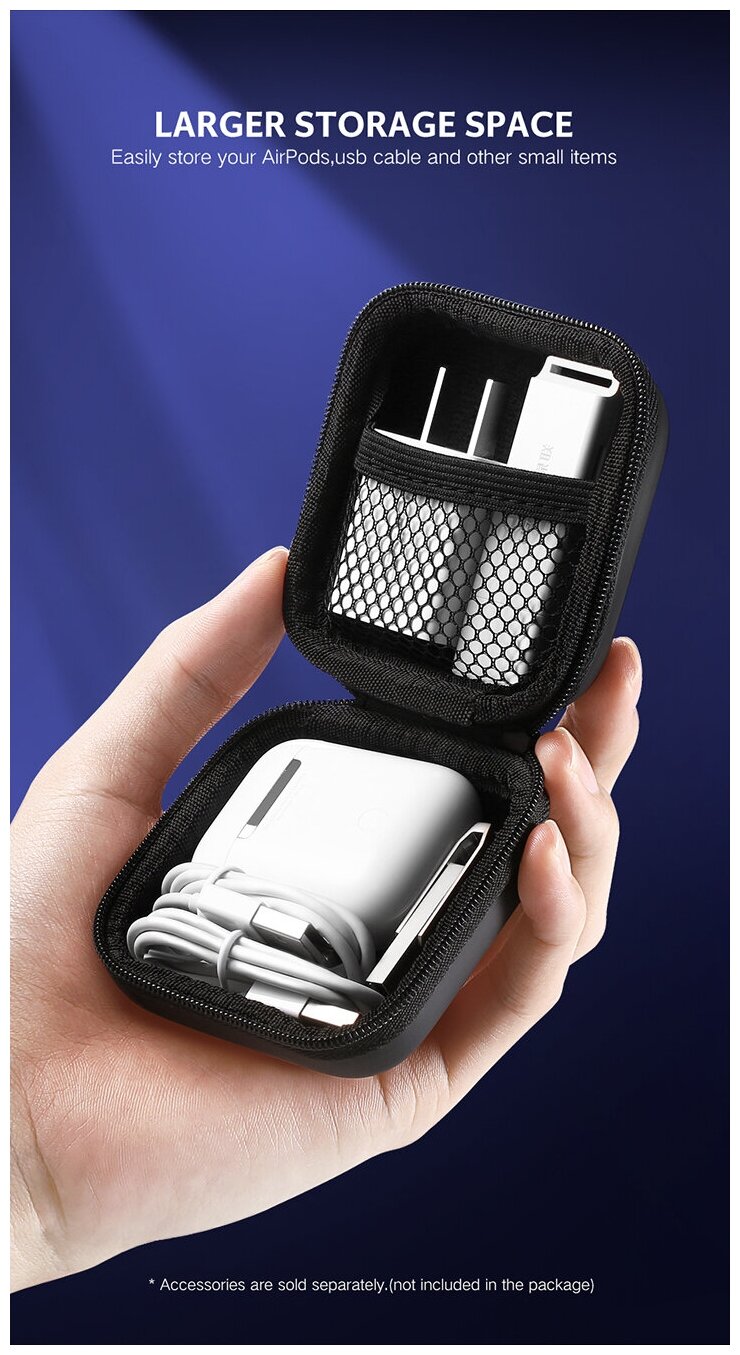| Плюсы: | удобный кейс для проводов, флешек и прочих мелочей |