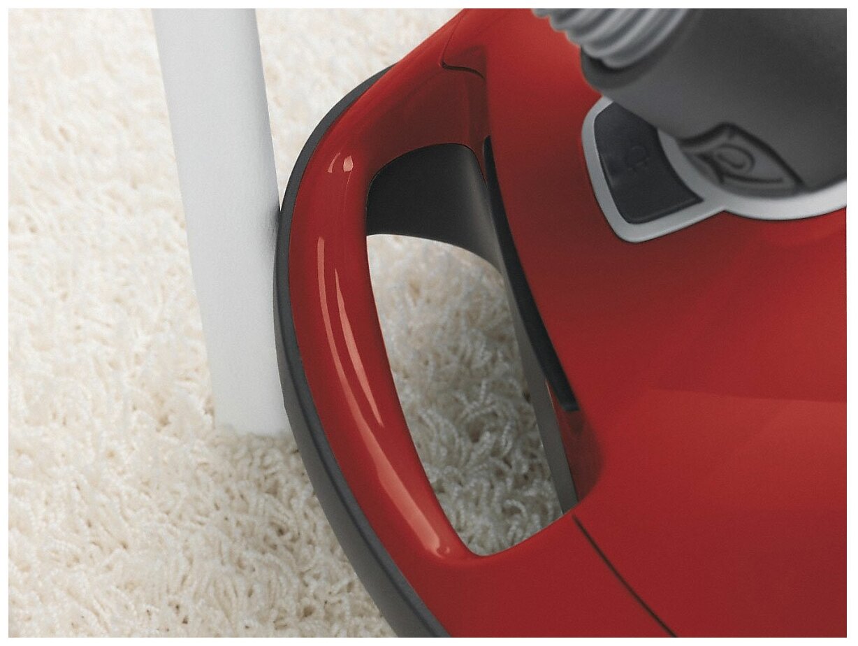 | Особенности конструкции | вертикальная парковка / индикатор заполнения пылесборника / место для хранения насадок / мягкий бампер / ножной переключатель вкл./выкл. / регулятор мощности на корпусе / Система намотки кабеля Comfort / Система парковки для выключения прибора / Система парковки для перерывов в уборке / Система шумоподавления / Тип мотора PowerLine / Эргономичная ручка для переноски / не повреждающие пол колёсики на стальных осях |