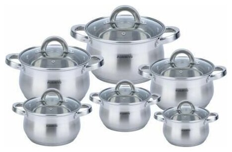Набор кастрюль ALBERG AL-2004 12 предметов 2л/3л/4л/5л/6.5л/8, нержавеющая сталь, 7-ми слойное дно, индукция, стеклянные крышки интересное: