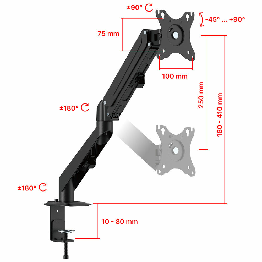 Кронштейн для монитора UniTeki FMGT81 (на стол к столу) со струбциной, наклонно-поворотный, газ лифт, диагональ 17-32 дюймов
