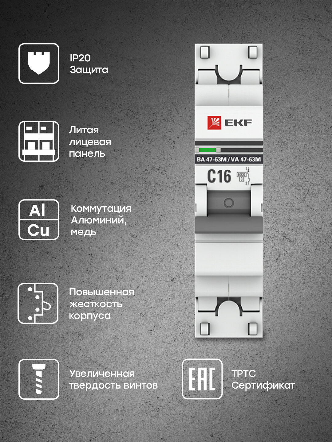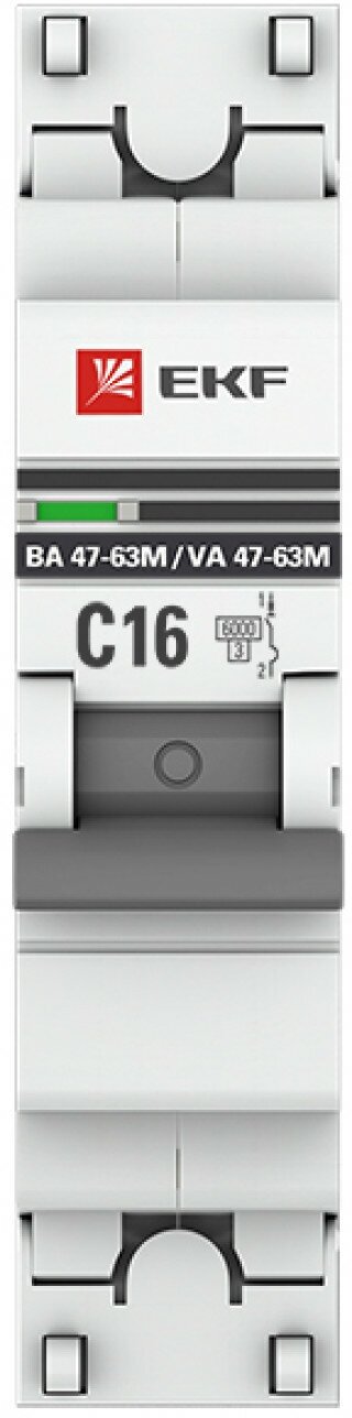 Автоматический выключатель EKF 1P 16А C 6кА ВА 47-63M с эл-маг. расцепителем PROxima mcb4763m-6-1-16C-pro