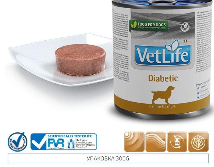 FARMINA VET LIFE CANIN DIABETIC для взрослых собак при сахарном диабете (300 гр х 6 шт)