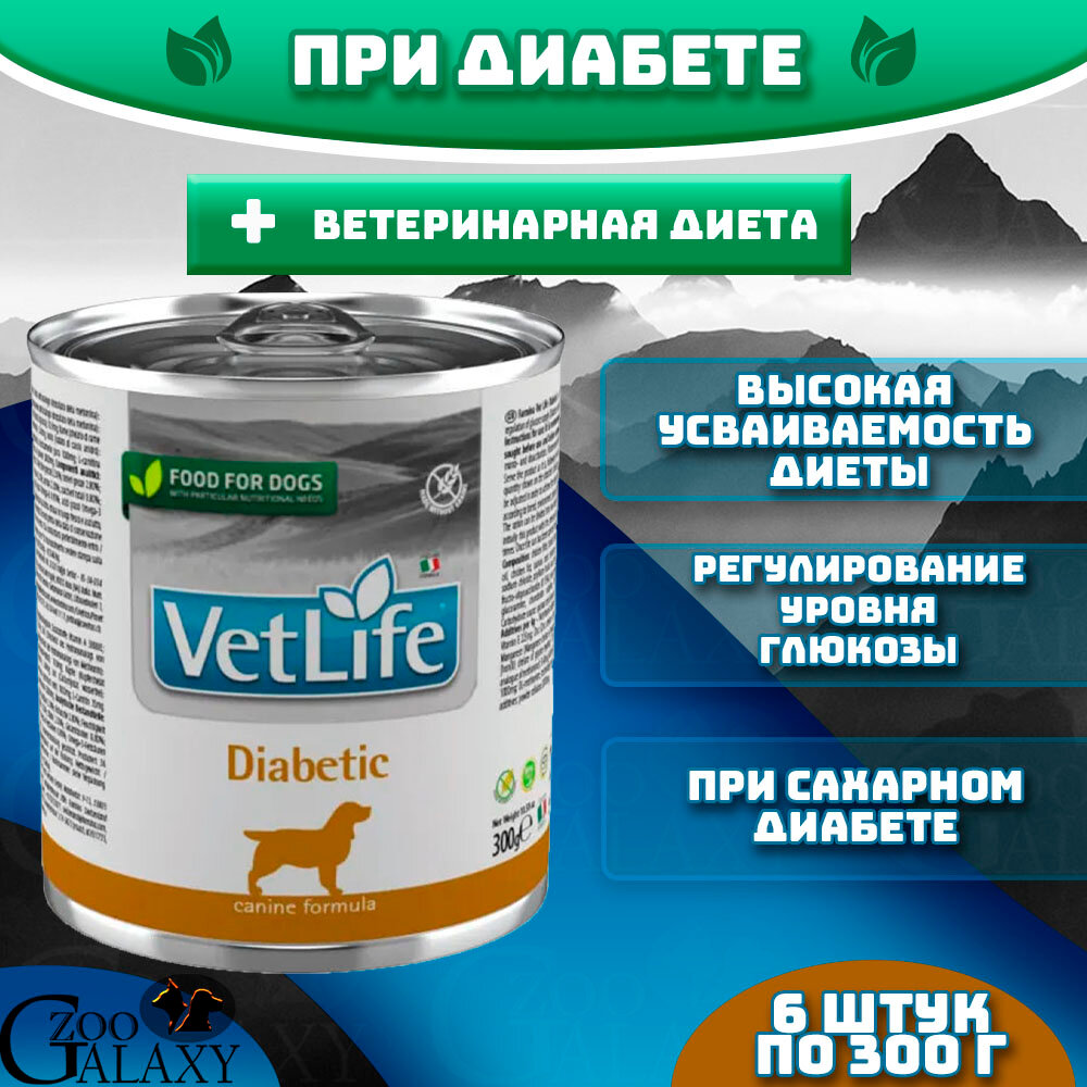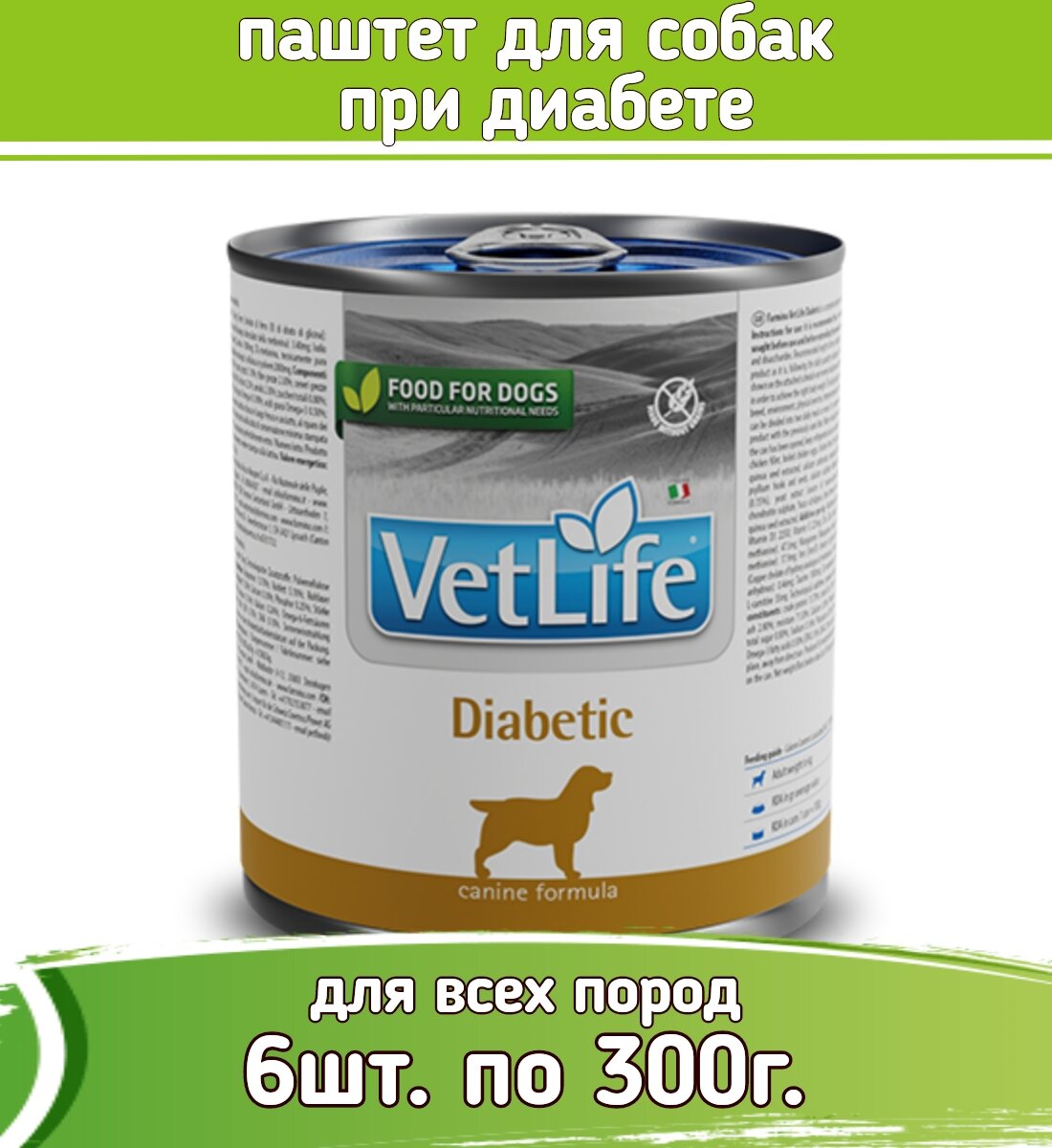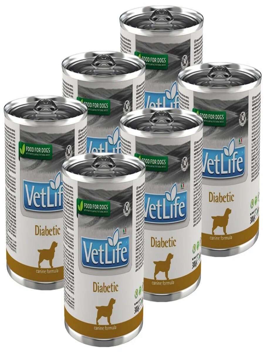 Диетические консервы для собак Farmina Vet Life Diabetic при диабете, паштет, упаковка 6* 300 гр