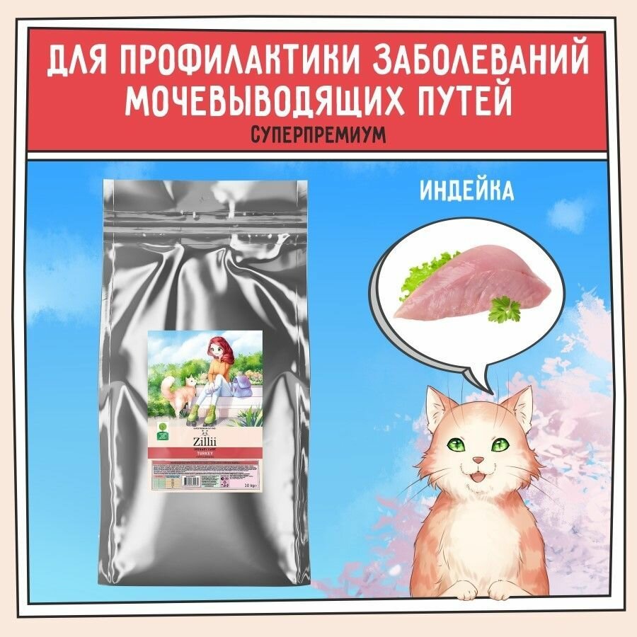 Сухой корм Zillii Urinary для взрослых кошек для профилактики заболеваний мочевыводящих путей с индейкой, 10 кг