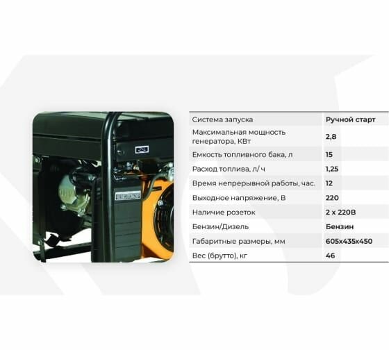 Генератор бензиновый однофазный Habert HT3600B 2.8кВт 220В бак 15л
