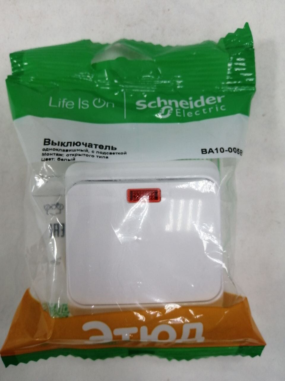 Выключатель 1-клавишный этюд, с подсветкой, открытый монтаж, белый. BA10-005B Schneider Electric