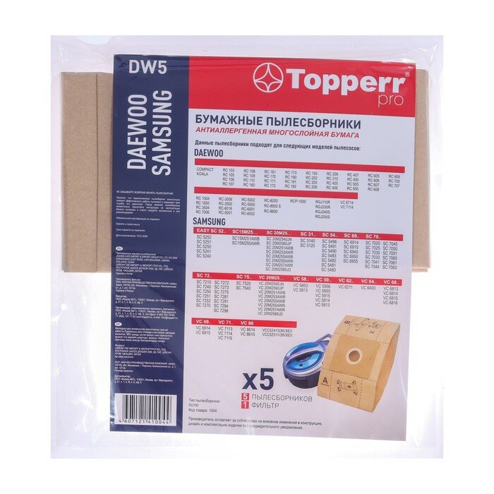 Купить Topperr Пылесборник (мешок) бумажный для пылесоса Daewoo - 5 шт + 1 фильтр, DW5