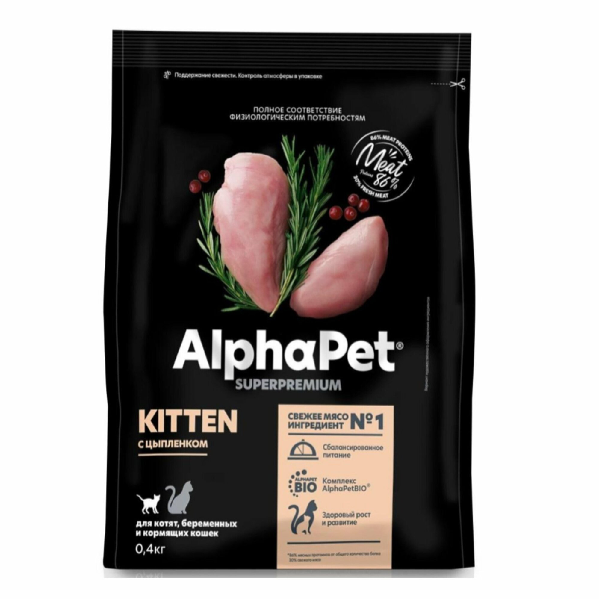Купить AlphaPet SUPERPREMIUM сухой корм для котят, беременных и кормящих кошек с цыпленком 400гр