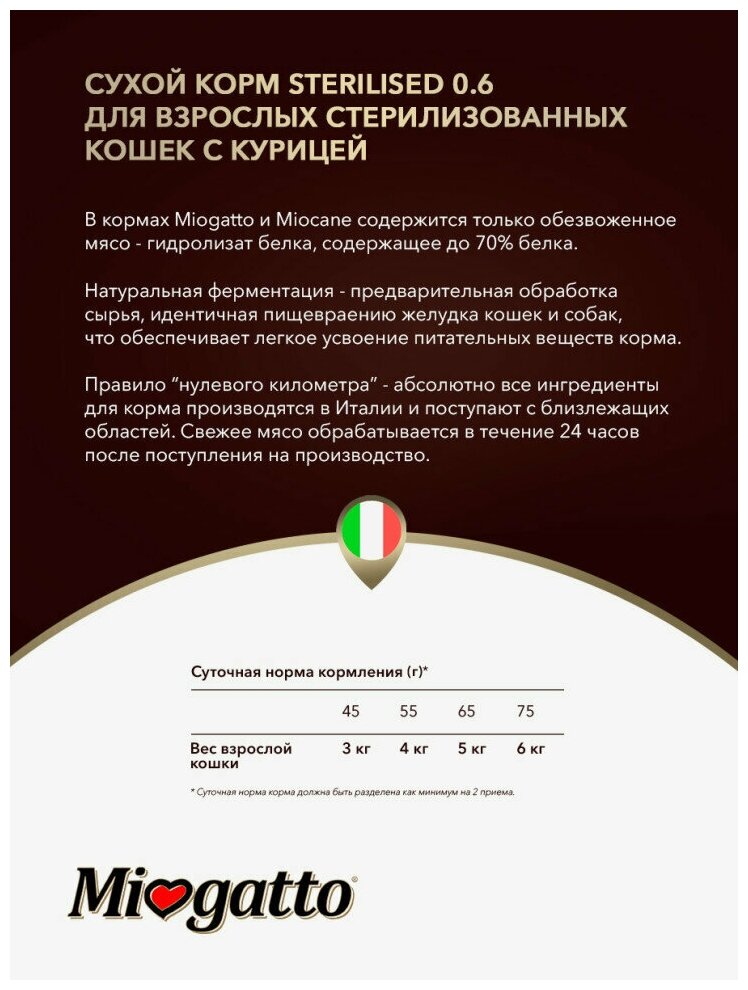 Корм сухой Miogatto STERILIZED 0.6 для стерилизованных кошек с большим содержанием куриного мяса,400 г интересное: