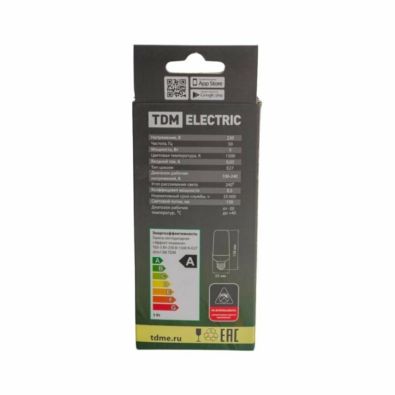 Ниже Вы можете прочитать отзывы на Лампа светодиодная "Эффект пламени" Т65-5 Вт-230 В-1500 К-E27 (65х138) TDM {SQ0340-0339}, ознакомится с подробными характеристиками, посмотреть интересные обзоры и фотографии на Лампа светодиодная "Эффект пламени" Т65-5 Вт-230 В-1500 К-E27 (65х138) TDM {SQ0340-0339}.