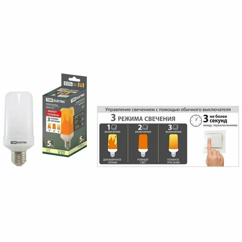 Лампа декоративная "Эффект пламени" Е27 LED 5W три/режима TDM T65