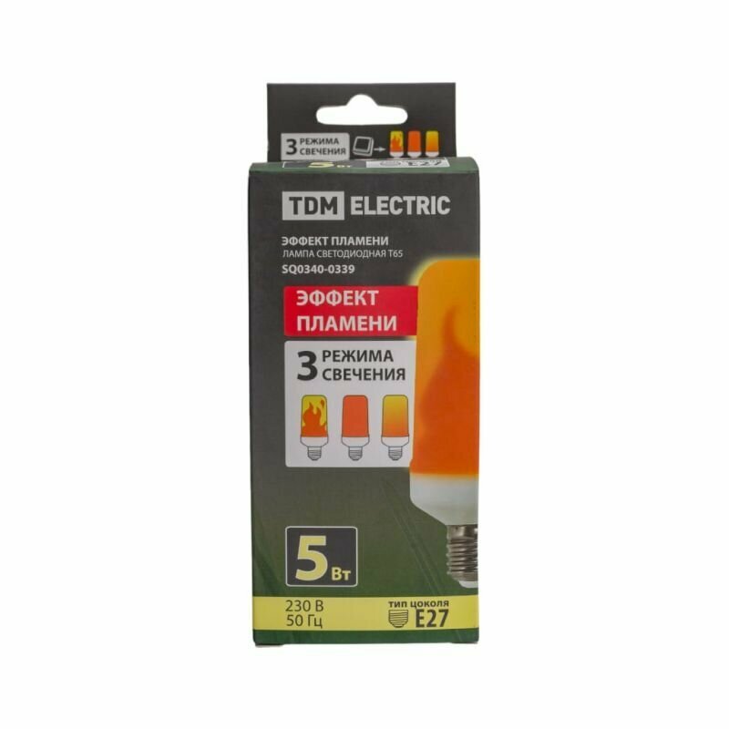 Купить Лампа светодиодная "Эффект пламени" Т65-5 Вт-230 В-1500 К-E27 (65х138) TDM {SQ0340-0339}