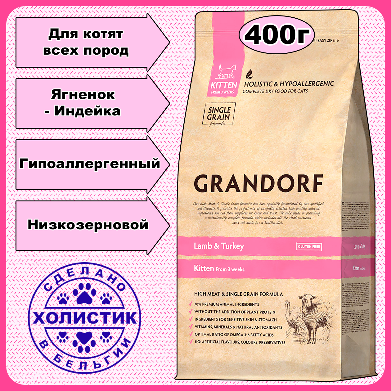 GRANDORF CAT Lamb&Turkey KITTEN (Ягненок с индейкой для котят) (400 г)