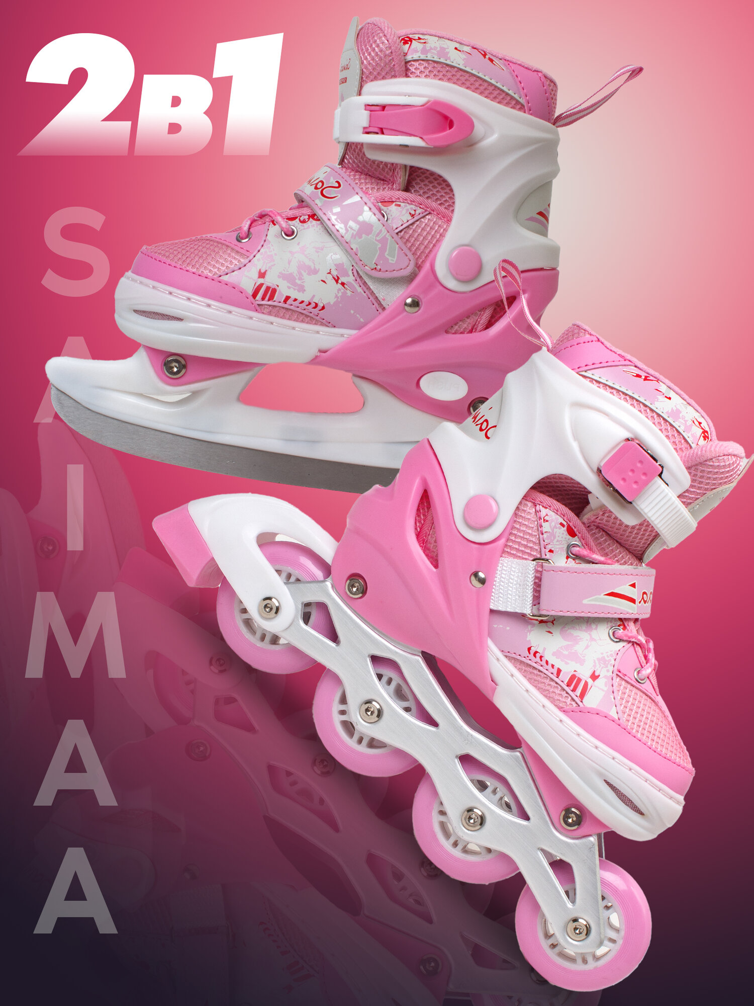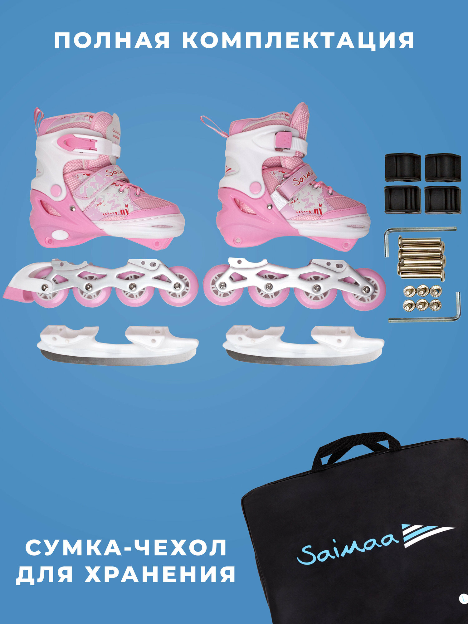 Роликовые коньки 3 в 1 раздвижные Saimaa, размер S (31-34), цвет розовый