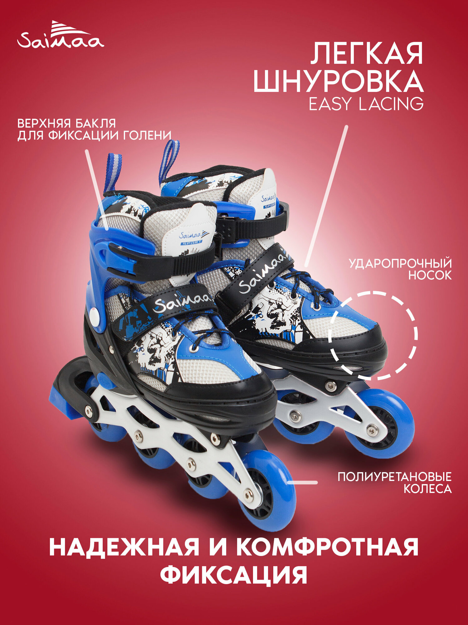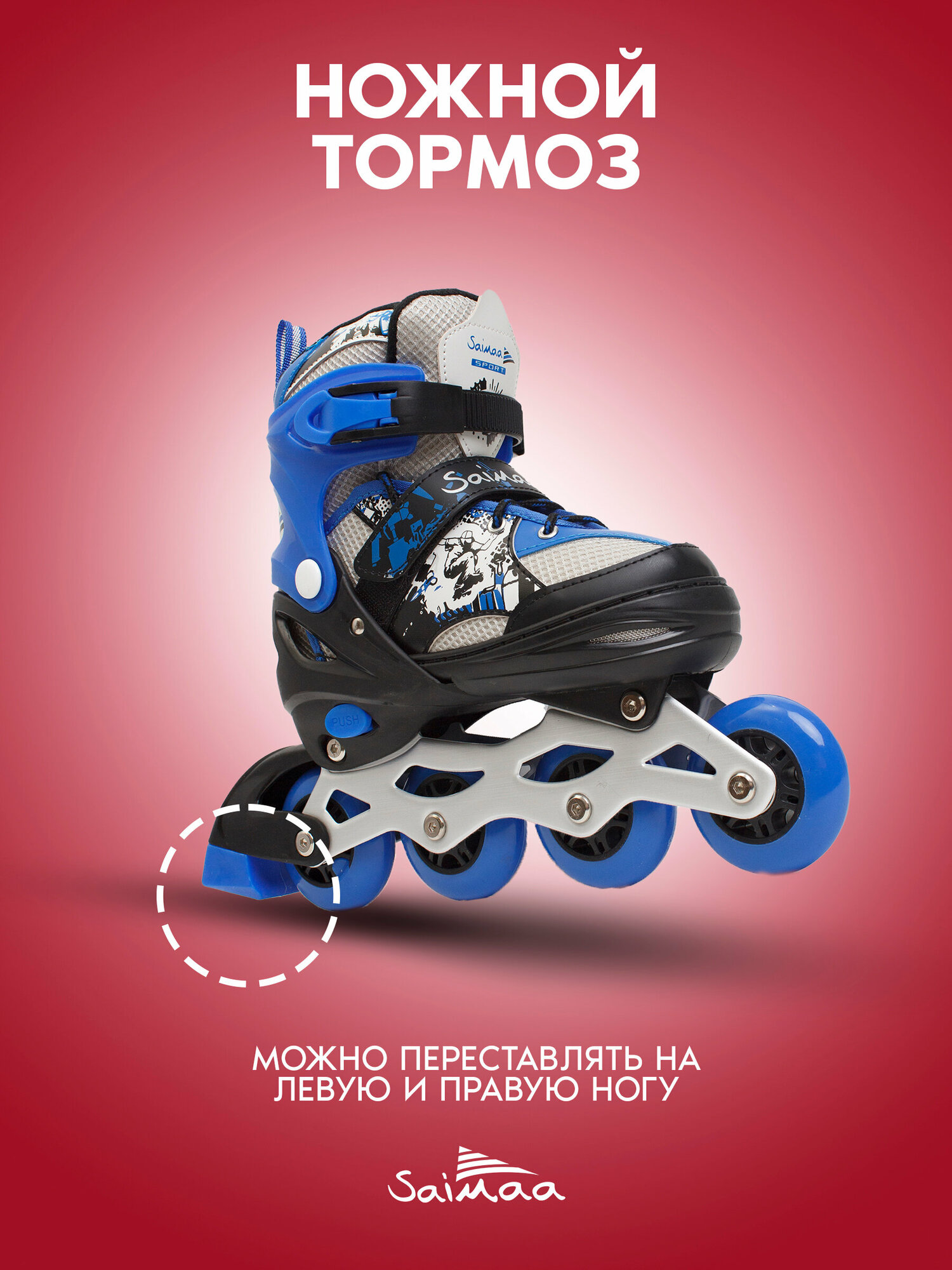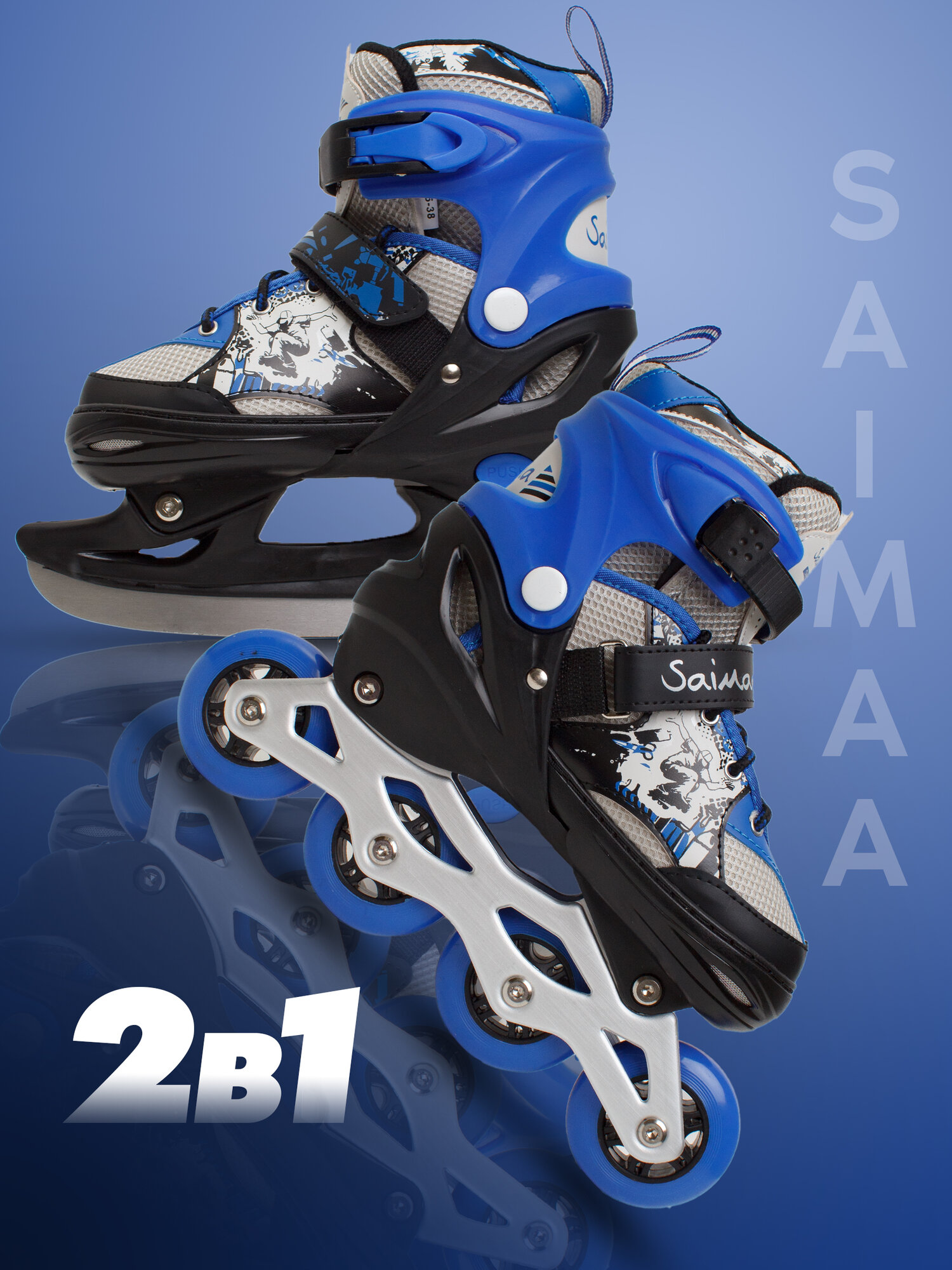 Роликовые коньки 3 в 1 раздвижные Saimaa, размер S (31-34), цвет синий