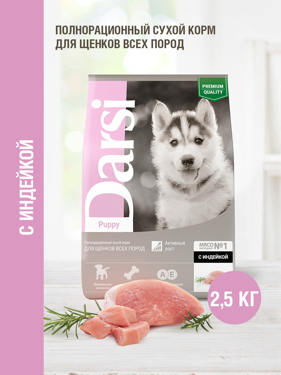 Сухой корм для собак Darsi корм для щенков всех пород, индейка 1 уп. х 1 шт. х 2.5 кг