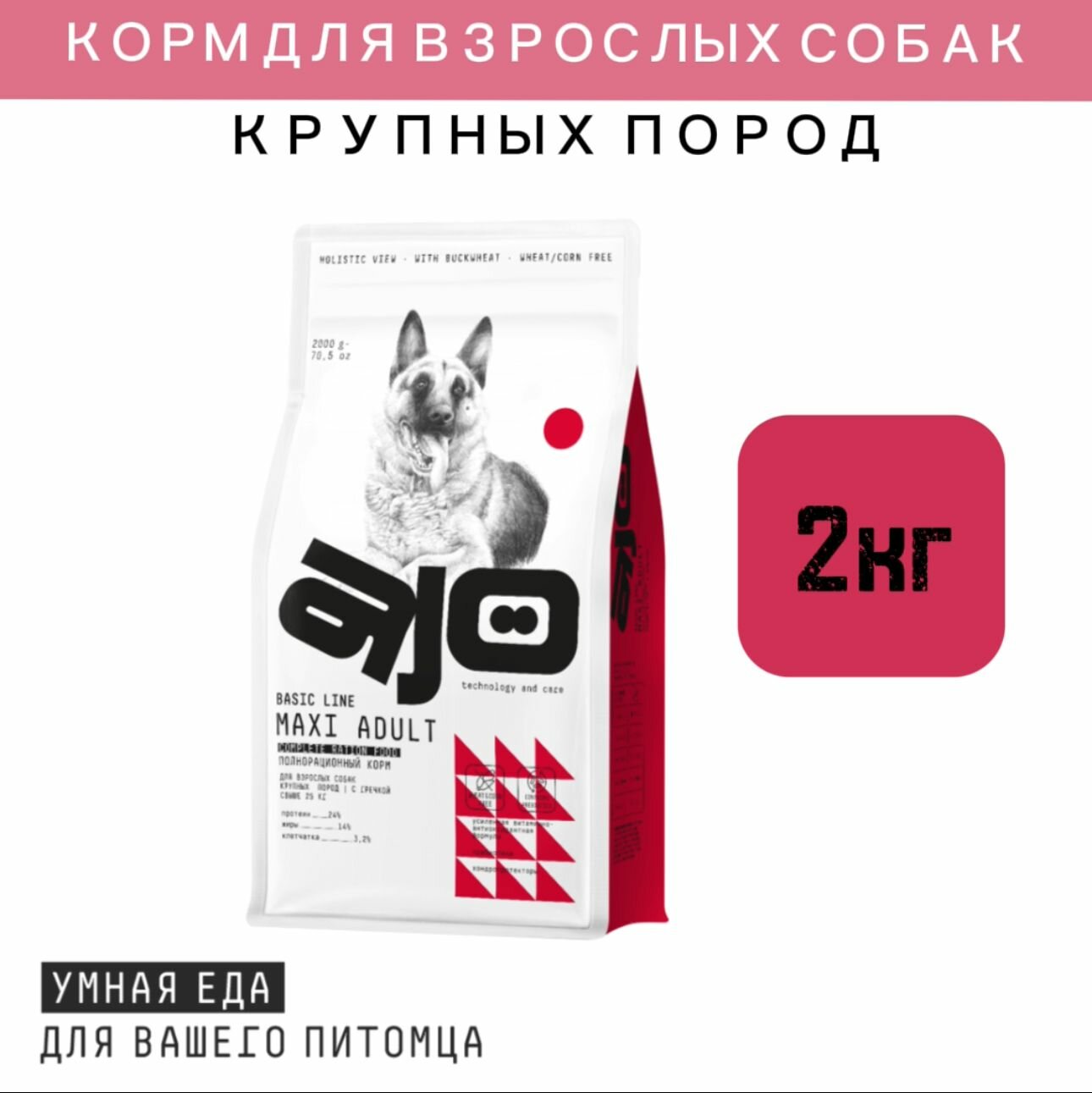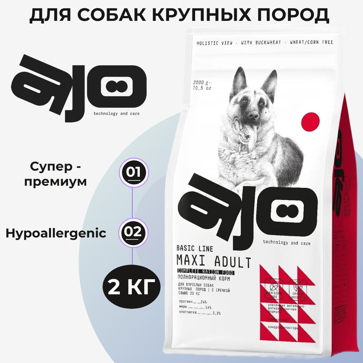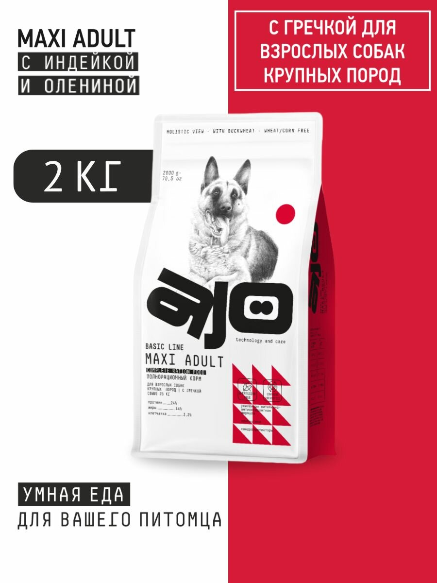 AJO Сухой корм для собак крупных пород с гречкой Maxi Adult, 2 кг
