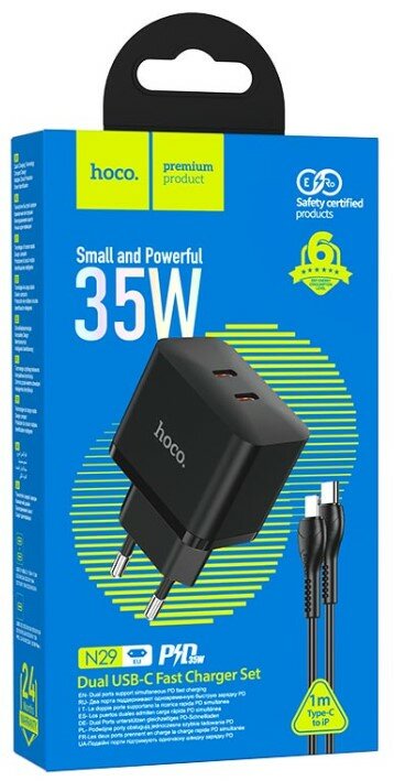 СЗУ HOCO N29 Triumph PD35W dual port(2C)+Type-C to lightning, black