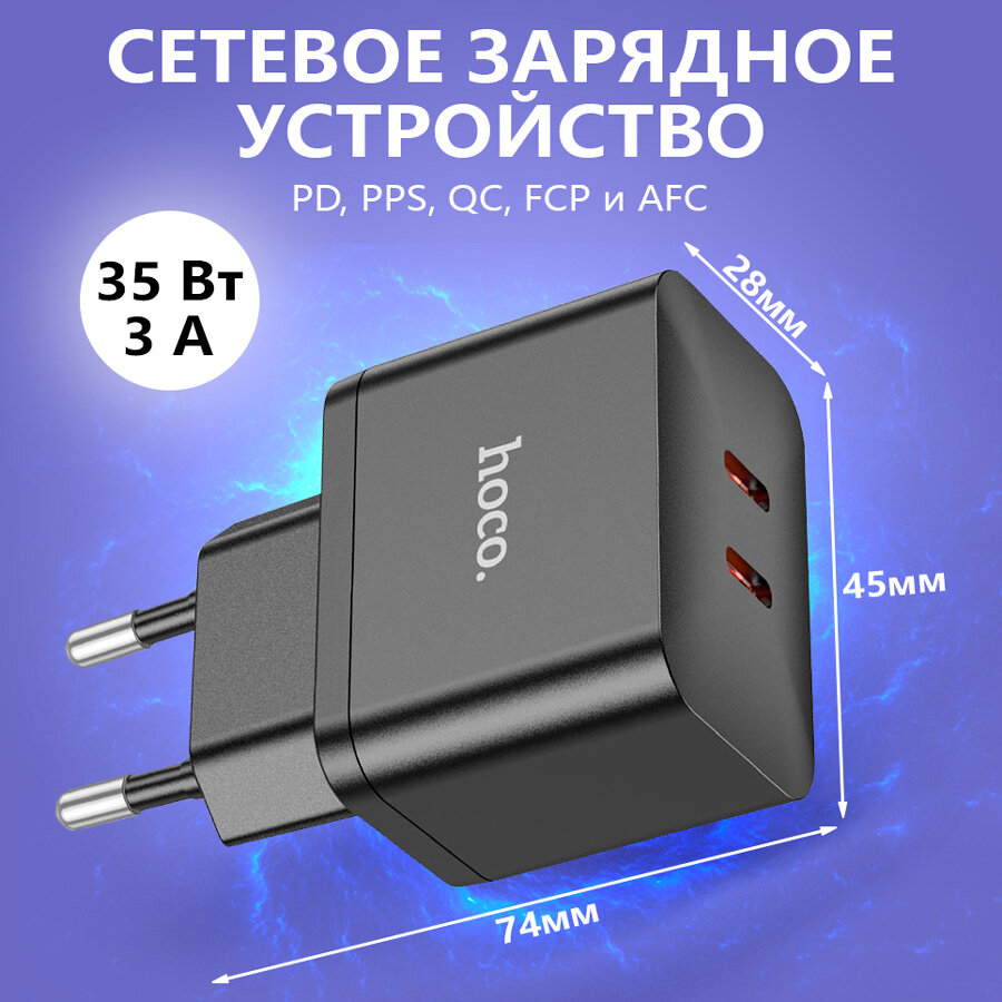 Сетевое зарядное устройство, 2 PD 35W (N29), HOCO, черный