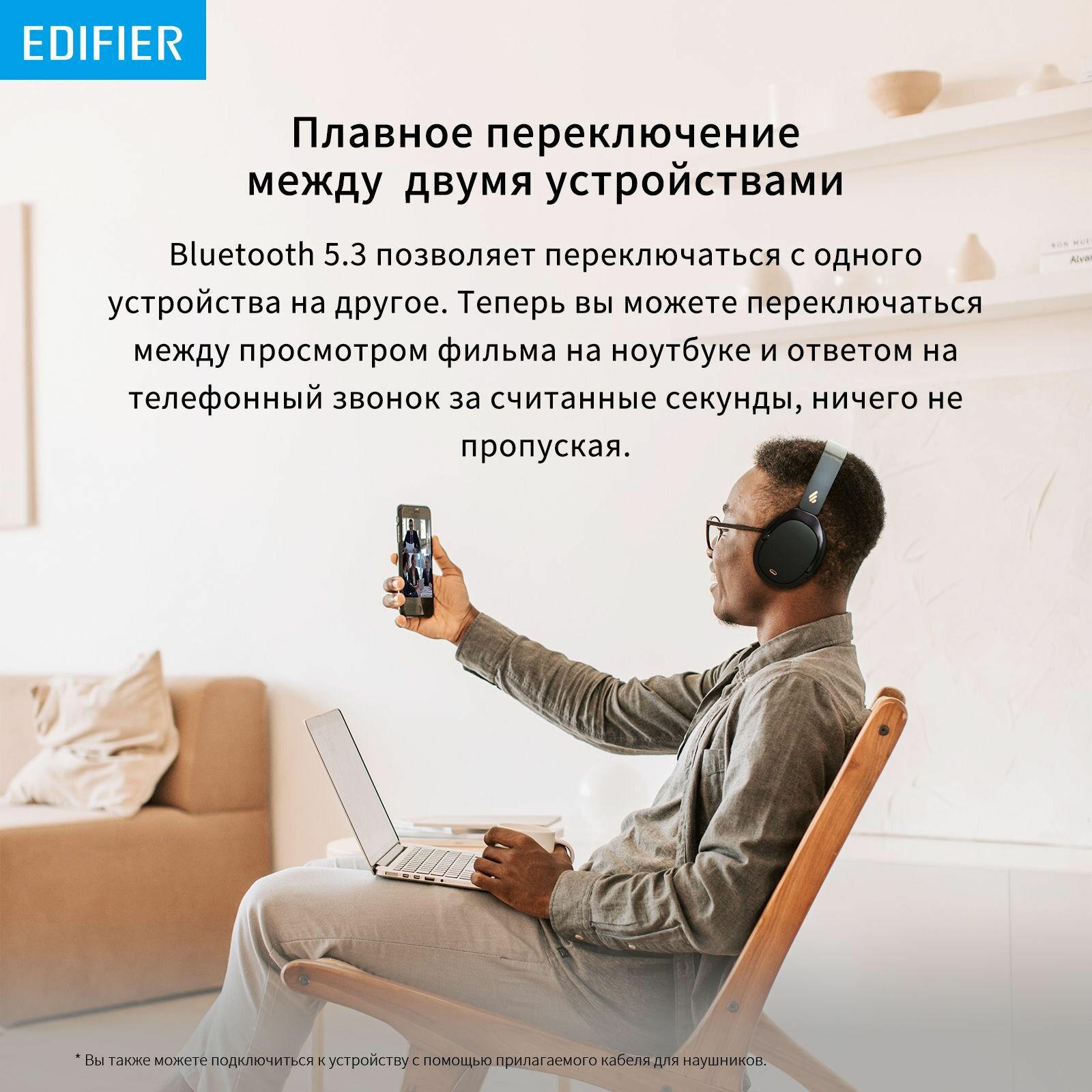 Наушники Edifier W800BT Plus, 3.5 мм/Bluetooth, накладные, черный