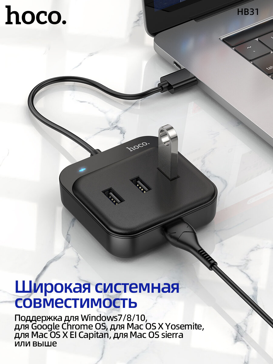 Хаб USB Hoco HB31 4xUSB 2.0 20cm 6931474784841