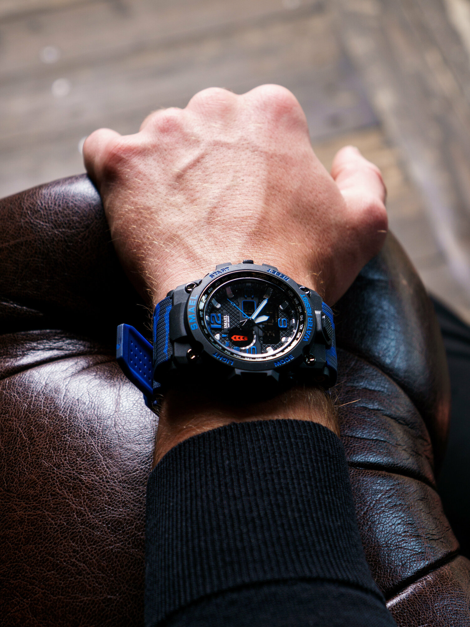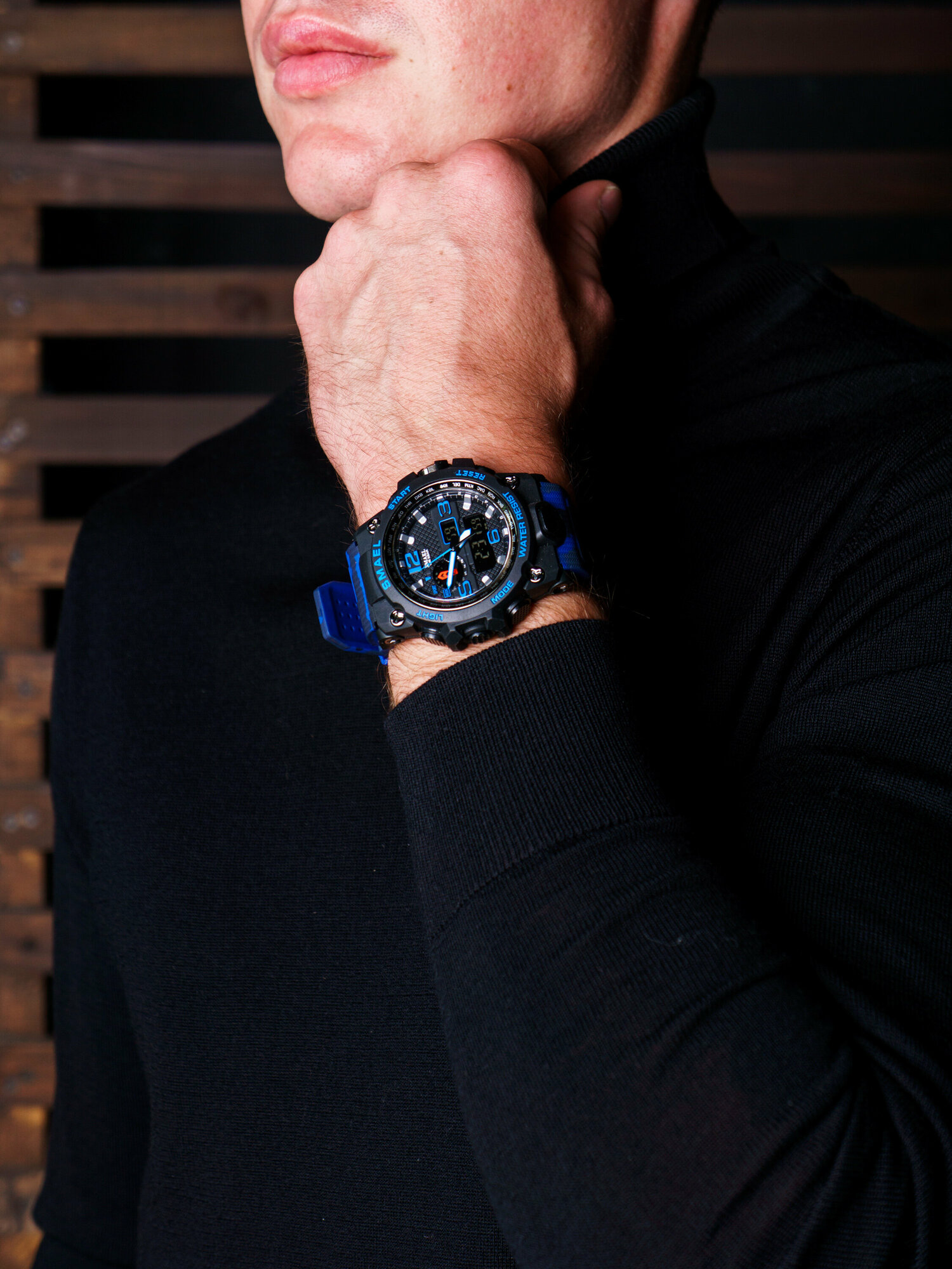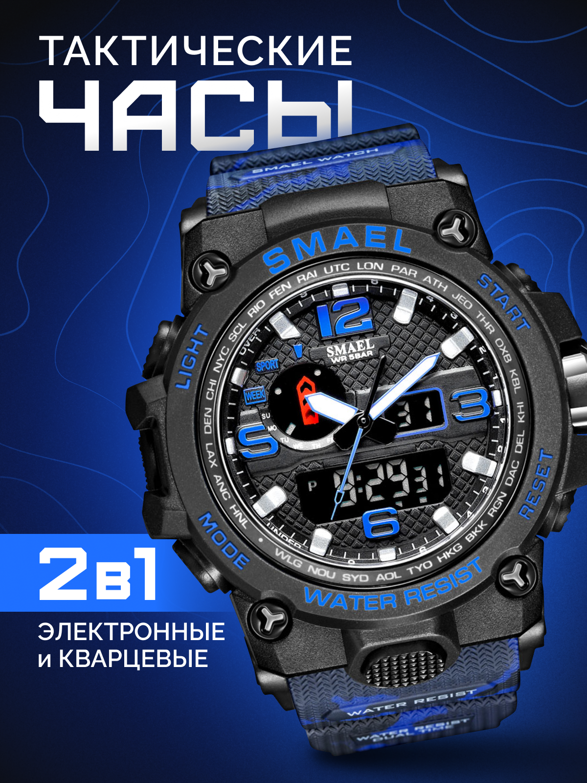 Часы мужские наручные тактические кварцевые электронные SMAEL SM1545 спортивные и водонепроницаемые, синие