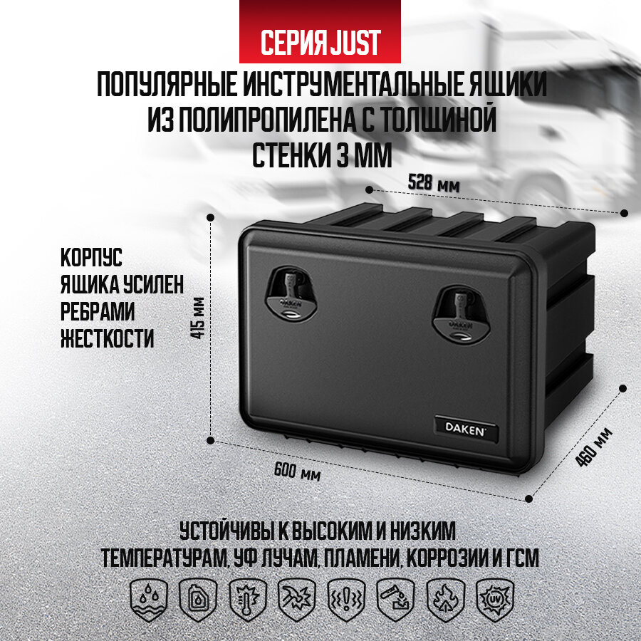 Ящик инструментальный пластиковый для грузовиков DAKEN 600. Серия JUST 81104. Размеры мм (ДхВхГ): 600х415х460. Италия