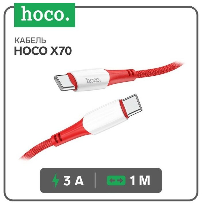 Кабель Hoco X70, Type-C - Type-C, 60 Вт (зарядка ноутбука), 3 А, 1 м, нейлон оплетка,красный
